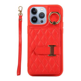 For iPhone 13 Pro Horizontal Card Bag Ring Holder Phone Case with Dual Lanyard(Red)