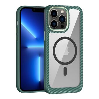 For iPhone 13 Pro MagSafe Carbon Fiber Transparent Back Panel Phone Case(Green)