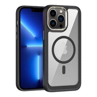 For iPhone 13 Pro MagSafe Carbon Fiber Transparent Back Panel Phone Case(Black)
