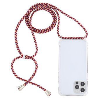 For iPhone 13 Pro Transparent Acrylic Airbag Shockproof Phone Protective Case with Lanyard (Purple Rainbow)