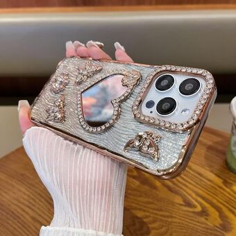 For iPhone 13 Pro Heart-shaped Mirror Diamond Glitter Phone Case(Gold)