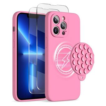 For iPhone 13 Pro Silicone Suction Cup MagSafe Phone Case with Screen Film(Pink)