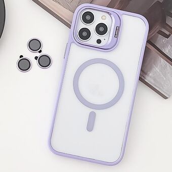 For iPhone 13 Pro MagSafe Acrylic Hybrid TPU Holder Phone Case with Lens film(Light Purple)