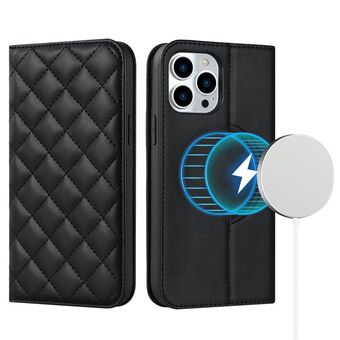 For iPhone 13 Pro Rhombic MagSafe RFID Anti-Theft Wallet Leather Phone Case(Black)