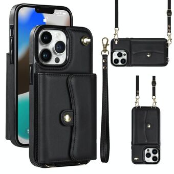 For iPhone 13 Pro RFID Card Slot Phone Case with Long Lanyard(Black)