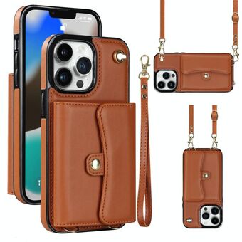 For iPhone 13 Pro RFID Card Slot Phone Case with Long Lanyard(Brown)