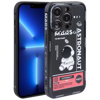 Θήκη τηλεφώνου για iPhone 13 Pro, σιλικόνης, με σχέδιο αστροναύτη και ευθείες άκρες (Αστροναύτης Άρη - Μαύρο)