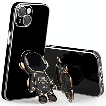 For iPhone 13 Pro Plating Astronaut Holder Phone Case with Lens Film (Black)