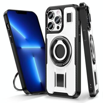 Θήκη τηλεφώνου για iPhone 13 Pro με δακτύλιο στήριξης, υβριδική από ανθρακονήματα PC και TPU (Λευκό)