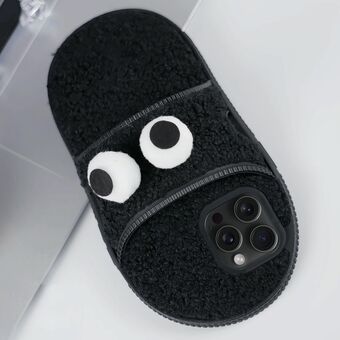 Θήκη κινητού τηλεφώνου TPU για iPhone 13 Pro, δημιουργική βελούδινη με μεγάλα μάτια και σχέδιο παντόφλας (Μαύρο)