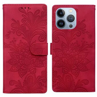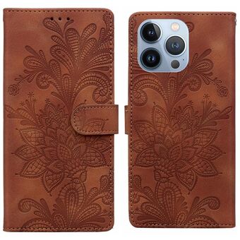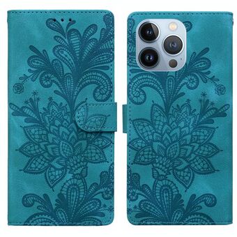 Θήκη τηλεφώνου για iPhone 13 Pro με δαντέλα, λουλουδάτο ανάγλυφο, μαγνητικό κούμπωμα και λουρί καρπού (Πράσινο)