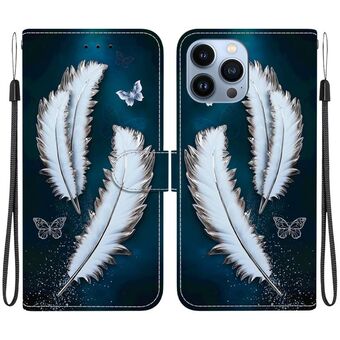 Θήκη τηλεφώνου από δέρμα με έγχρωμη σχεδίαση κρυστάλλινης υφής για iPhone 13 Pro (Χρυσά Φτερά Πεταλούδας)