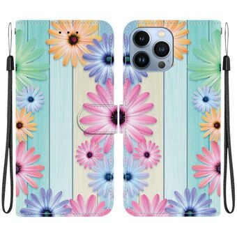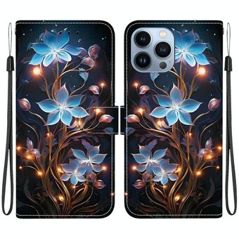 Θήκη τηλεφώνου από δέρμα με έγχρωμη σχεδίαση κρυστάλλινης υφής για iPhone 13 Pro (Λουλούδι Μικρού Φαναριού)