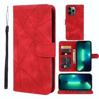 Θήκη τηλεφώνου δερμάτινη με γεωμετρικά σχέδια και αίσθηση δέρματος για iPhone 13 Pro (Κόκκινο)