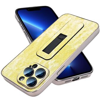 Θήκη τηλεφώνου με ψύξη για iPhone 13 Pro, μοτίβο τζιν, επιμεταλλωμένο, με αναδιπλούμενο στήριγμα (Κίτρινο Πράσινο)