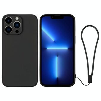 For iPhone 13 Pro Silicone Phone Case with Wrist Strap(Black)