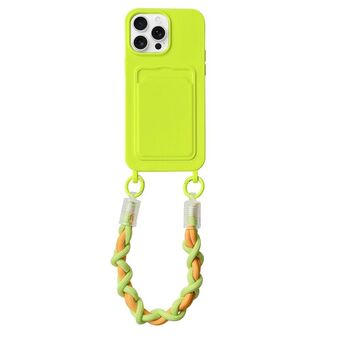 For iPhone 13 Pro Dopamine Card Slot Phone Case with Lanyard(Fluorescent Green)