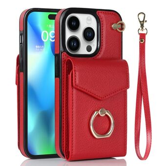 Θήκη τηλεφώνου δερμάτινη για iPhone 13 Pro με πλευρική αγκράφα, διπλό λουρί χειρός (Κόκκινο)