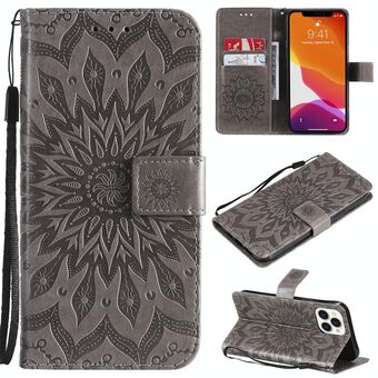 For iPhone 13 Pro Max Pressed Printing Sunflower Pattern Horizontal Flip PU Leather Case Holder & Card Slots & Wallet & Lanyard (Grey)