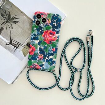 For iPhone 13 Pro Max Lanyard Small Floral TPU Phone Case (Green)