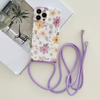 For iPhone 13 Pro Max Lanyard Small Floral TPU Phone Case (Purple)