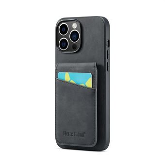 For iPhone 13 Pro Max Fierre Shann Crazy Horse Card Holder Back Cover PU Phone Case(Black) (FIERRE SHANN)