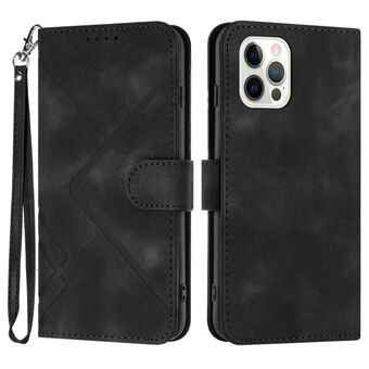 For iPhone 13 Pro Max Line Pattern Skin Feel Leather Phone Case(Black)