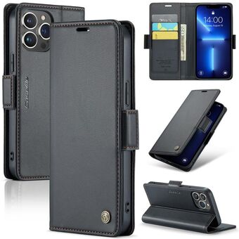 For iPhone 13 Pro Max CaseMe 023 Butterfly Buckle Litchi Texture RFID Anti-theft Leather Phone Case(Black) (CaseMe)