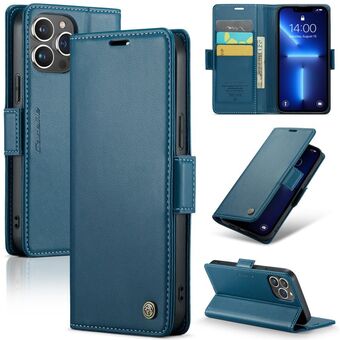 For iPhone 13 Pro Max CaseMe 023 Butterfly Buckle Litchi Texture RFID Anti-theft Leather Phone Case(Blue) (CaseMe)