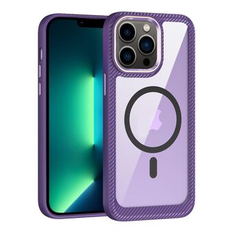 For iPhone 13 Pro Max MagSafe Carbon Fiber Transparent Back Panel Phone Case(Purple)