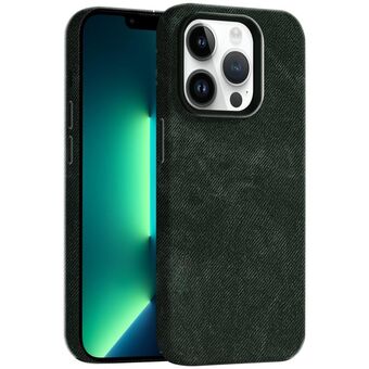 For iPhone 13 Pro Max Skin Feel Denim Leather MagSafe Phone Case(Army Green)