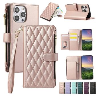 For iPhone 13 Pro Max Rhombic Zipper Wallet Leather Phone Case(Rose Gold)