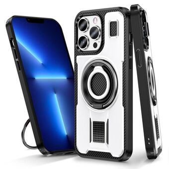 For iPhone 13 Pro Max Ring Holder Carbon Fiber PC Hybrid TPU Phone Case(White)
