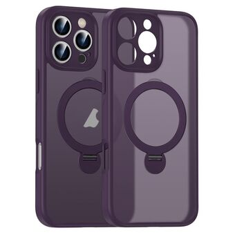 For iPhone 13 Pro Max Matte Texture 360 Degree Rotary Tone Holder MagSafe Phone Case(Dark Purple)