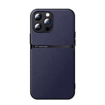For iPhone 13 Pro Max Litchi Leather Magnetic Full Coverage Shockproof Phone Case(Navy Blue)