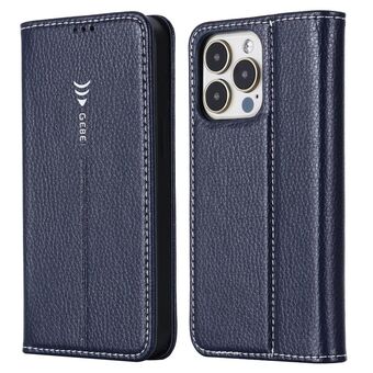 For iPhone 13 Pro Max GEBEI Top-grain Leather Horizontal Flip Protective Case with Holder & Card Slots & Wallet & Photo Frame (Blue) (GEBEI)