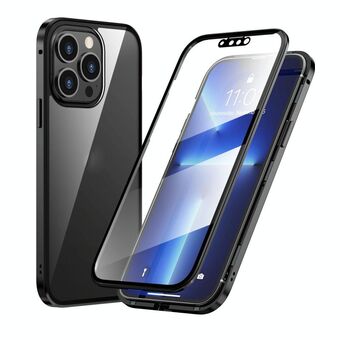 For iPhone 13 Pro Max HD Magnetic Metal Frame Double-sided Tempered Glass Phone Case (Black)