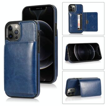 For iPhone 13 Pro Max Shockproof PU + TPU Protective Case with Card Slots & Holder (Blue)