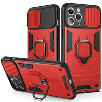 For iPhone 13 Pro Max Sliding Camera Cover Design TPU + PC Shockproof Case with Ring Holder (Red)