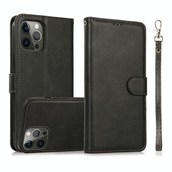 For iPhone 13 Pro Max Fashion Buckle Protective Case with Holder & Card Slot & Wallet & Lanyard (Black)