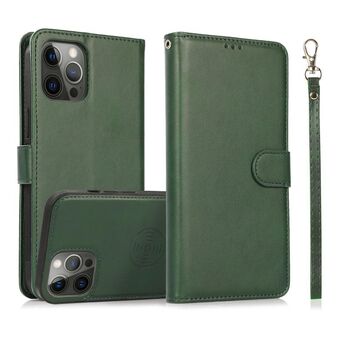 For iPhone 13 Pro Max Fashion Buckle Protective Case with Holder & Card Slot & Wallet & Lanyard (Green)