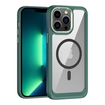 For iPhone 13 Pro Max MagSafe Carbon Fiber Transparent Back Panel Phone Case(Green)