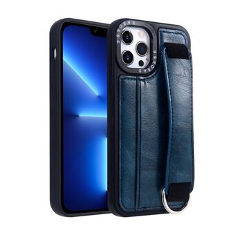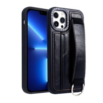 For iPhone 13 Pro Max Wristband Leather Back Phone Case(Black)