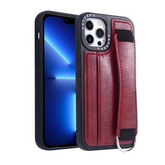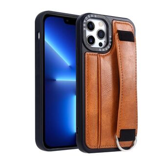 For iPhone 13 Pro Max Wristband Leather Back Phone Case(Brown)