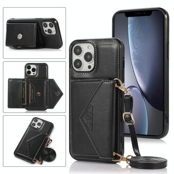 For iPhone 13 Pro Max Multi-functional Cross-body Card Bag TPU+PU Back Cover Case with Holder & Card Slot & Wallet (Black)