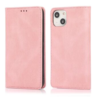 For iPhone 13 Pro Max Calf Texture Magnetic Card Bag PU Shockproof Case with Holder & Card Slot (Rose Gold)