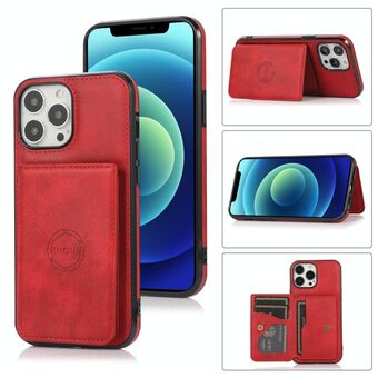 For iPhone 13 Pro Max Calf Texture Magnetic Card Bag PU Shockproof Case with Holder & Card Slot (Red)