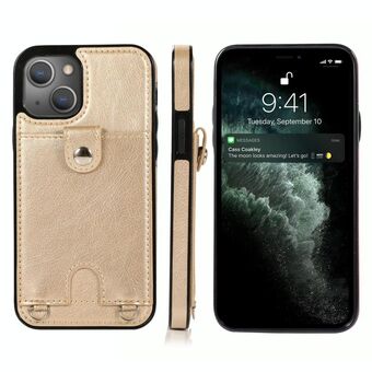 For iPhone 13 Pro Max Shockproof PU Leather + TPU Protective Case with Card Slot & Lanyard (Gold)