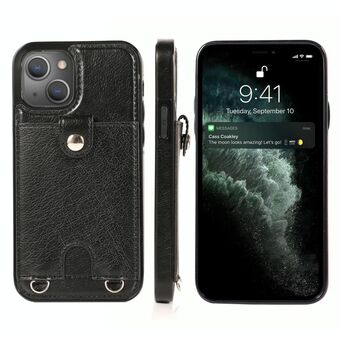 For iPhone 13 Pro Max Shockproof PU Leather + TPU Protective Case with Card Slot & Lanyard (Black)