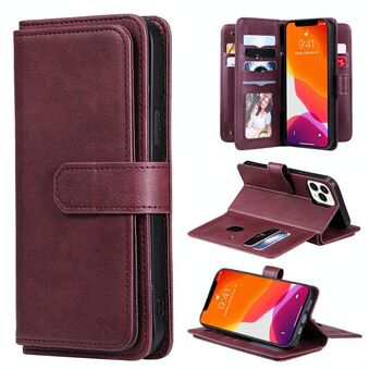 For iPhone 13 Pro Max Multifunctional Magnetic Copper Buckle Horizontal Flip Solid Color Leather Case with 10 Card Slots & Wallet & Holder & Photo Frame (Wine Red)